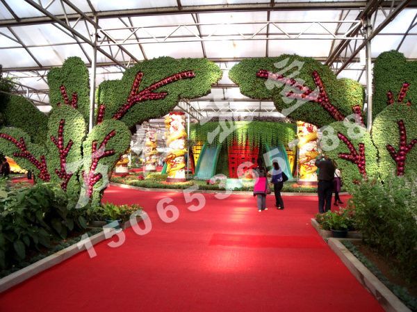 花卉展廳溫室:花卉展廳溫室主要用于花卉展覽和花卉交易。溫室功能既要保證花卉的正常生長,又具有一定的觀光效應(yīng)?;ɑ苷箯d一般選用高檔溫室,主要采用PC板溫室和玻璃溫室,這個類型的溫室內(nèi)部空間廣闊,立柱高度高,室內(nèi)氣候宜人。